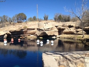 The town does have some small lakes and something called the Blue Hole, which turns out to be an artesian well 81 feet deep that is a favorite haunt of scuba divers, though no one was there when we stopped.