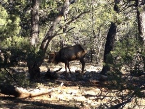 On our first afternoon there, Teddy and I walked from the campground down to the canyon rim. At one point, we turned around and a huge female elk was crossing the path behind us.