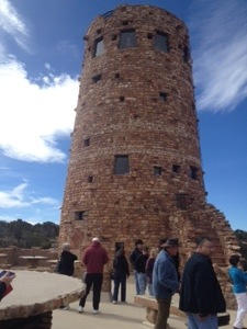 We spent quite a bit of time at two of her buildings, Hermit’s Rest and the Desert View Watchtower, and we became big fans of hers. Her buildings look as if they have always been there. The Watchtower, for example, is of modern steel construction but its exterior is made of local stone and it appears to be quite old and rising from the ruins of another building.
