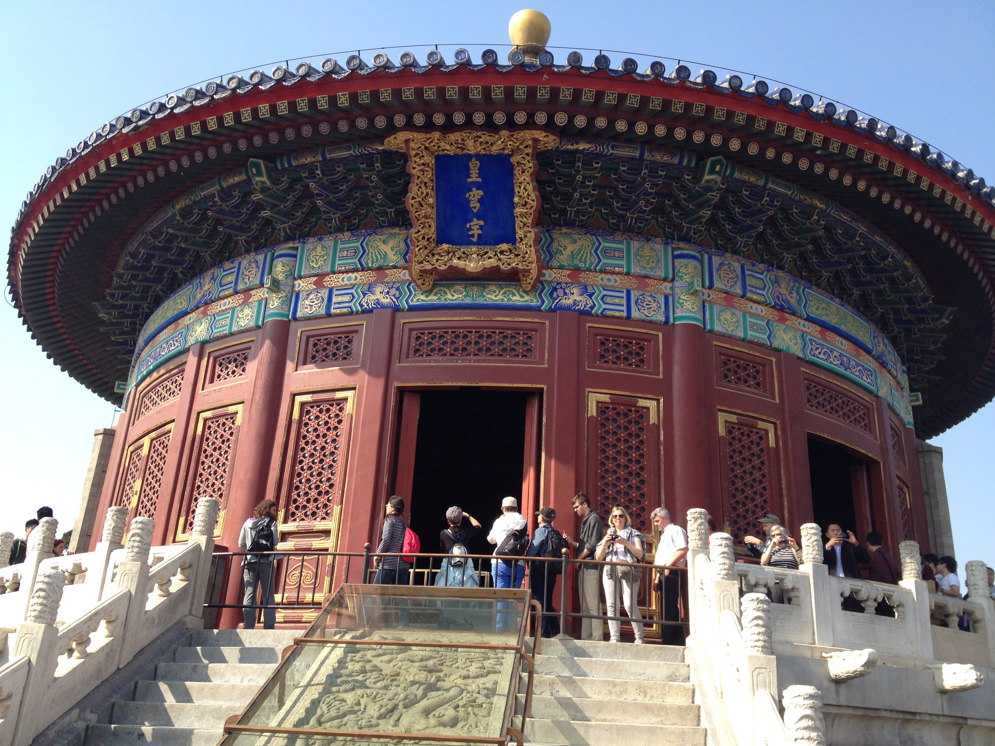 Our second stop was the Temple of Heaven, a large complex where emperors of the Ming and Qing dynasties used to come to to offer prayers for a good harvest. The temple and its surrounding park cover about one square mile. It has three main structures: the Hall of Prayer for Good Harvests, the Imperial Vault of Heaven, and the Circular Mound Altar, which you proceed through in that order.