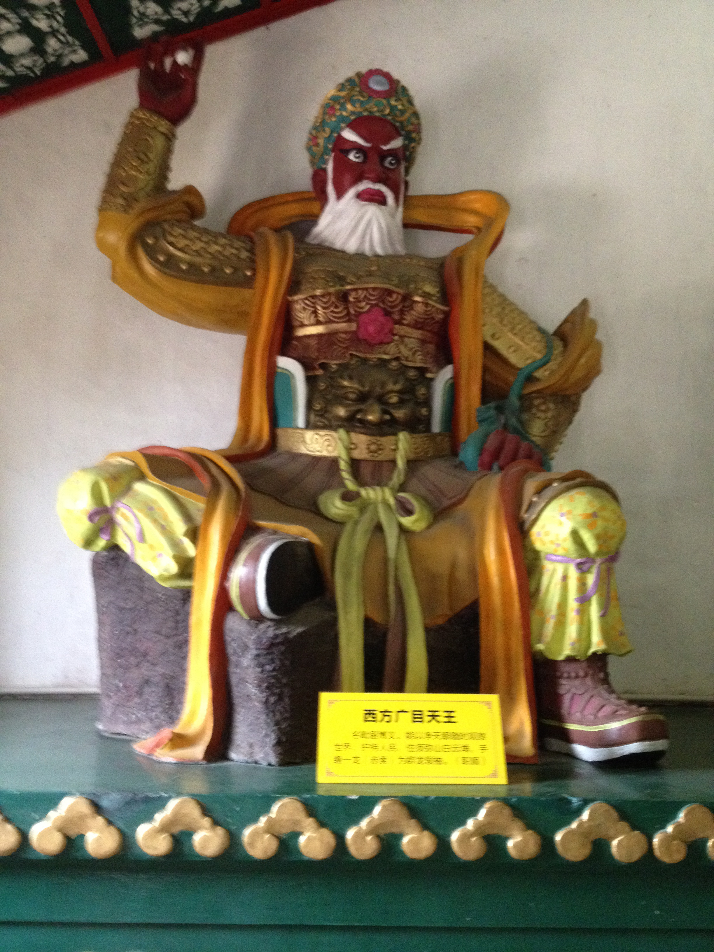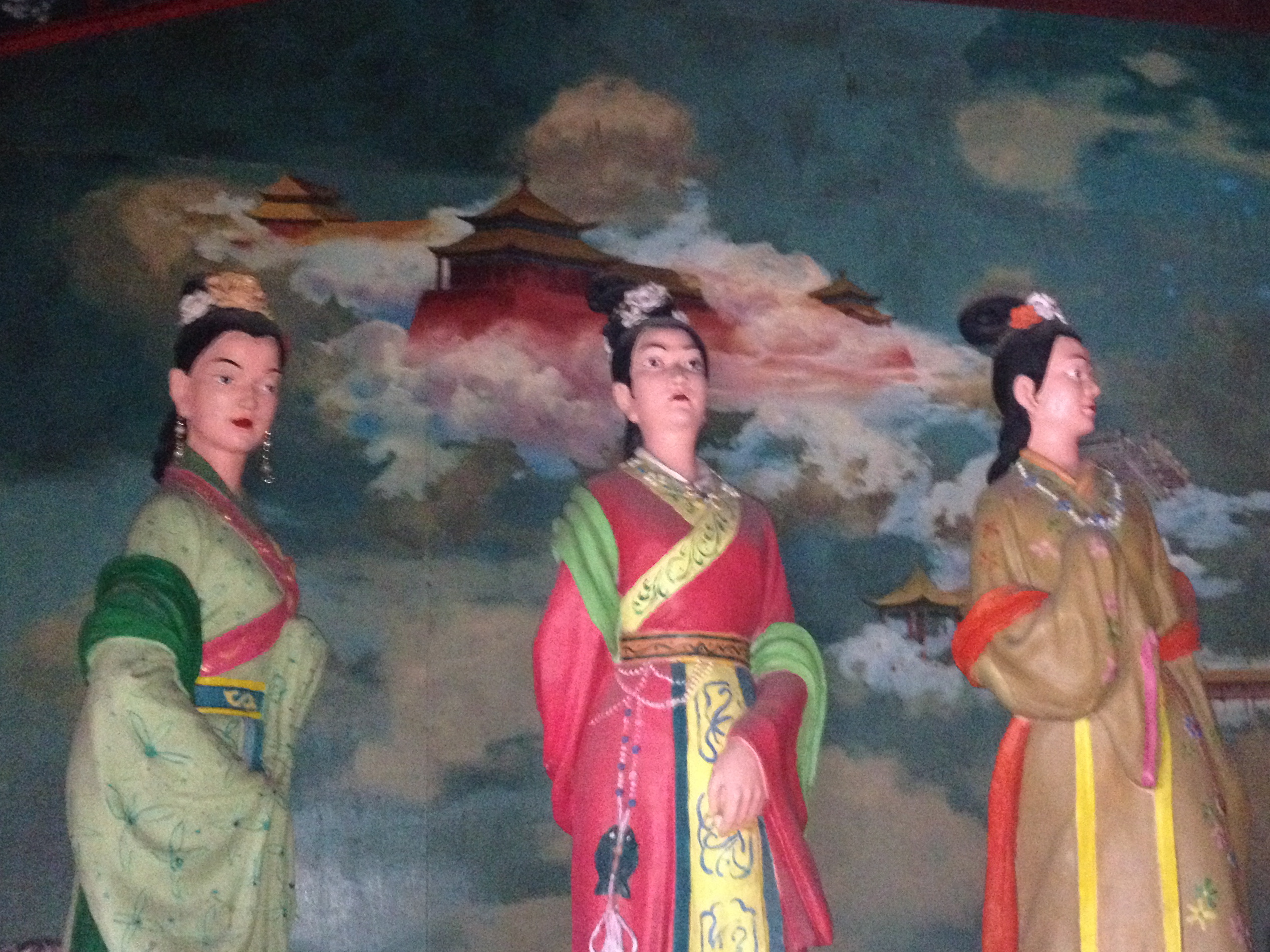 When you reach the top there is a courtyard and then a building that contains numerous artifacts, including Buddhas and statues of various gods. Because the pagoda is no longer in use for religious activities, photographs are permitted. One room had gods of the four seasons; another had statues of seven female gods, one of whom was said to have fallen in love with a mortal. We were asked to guess which one it was. (It was the one who was looking down.)