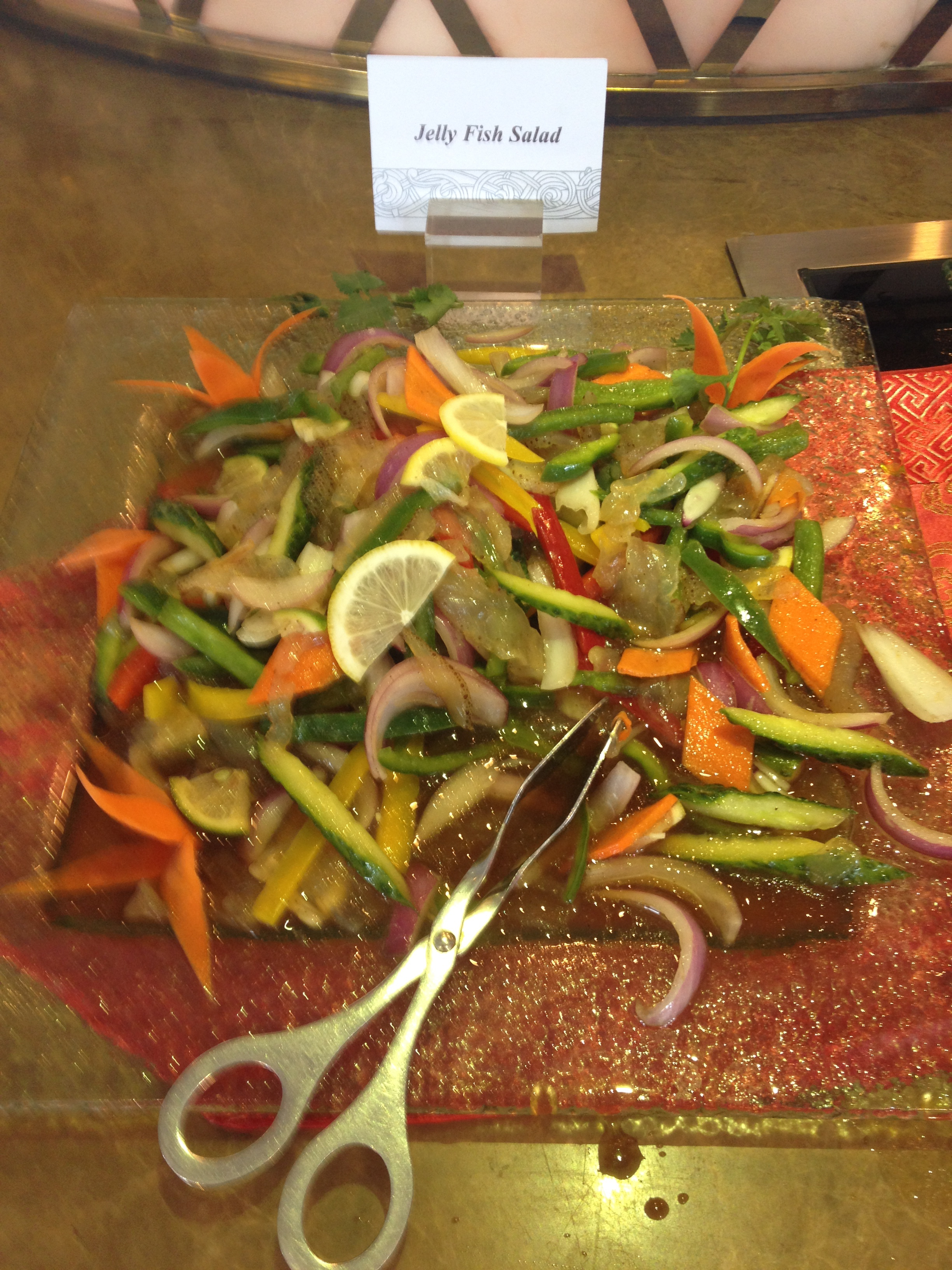 After the school visit, we returned to the ship and sailed away. Lunch offerings included street food like chicken feet, pig’s tails, thousand-year-old eggs, and jellyfish salad. We passed, but one man at our table went back for seconds on chicken legs. Apparently they taste like chicken.