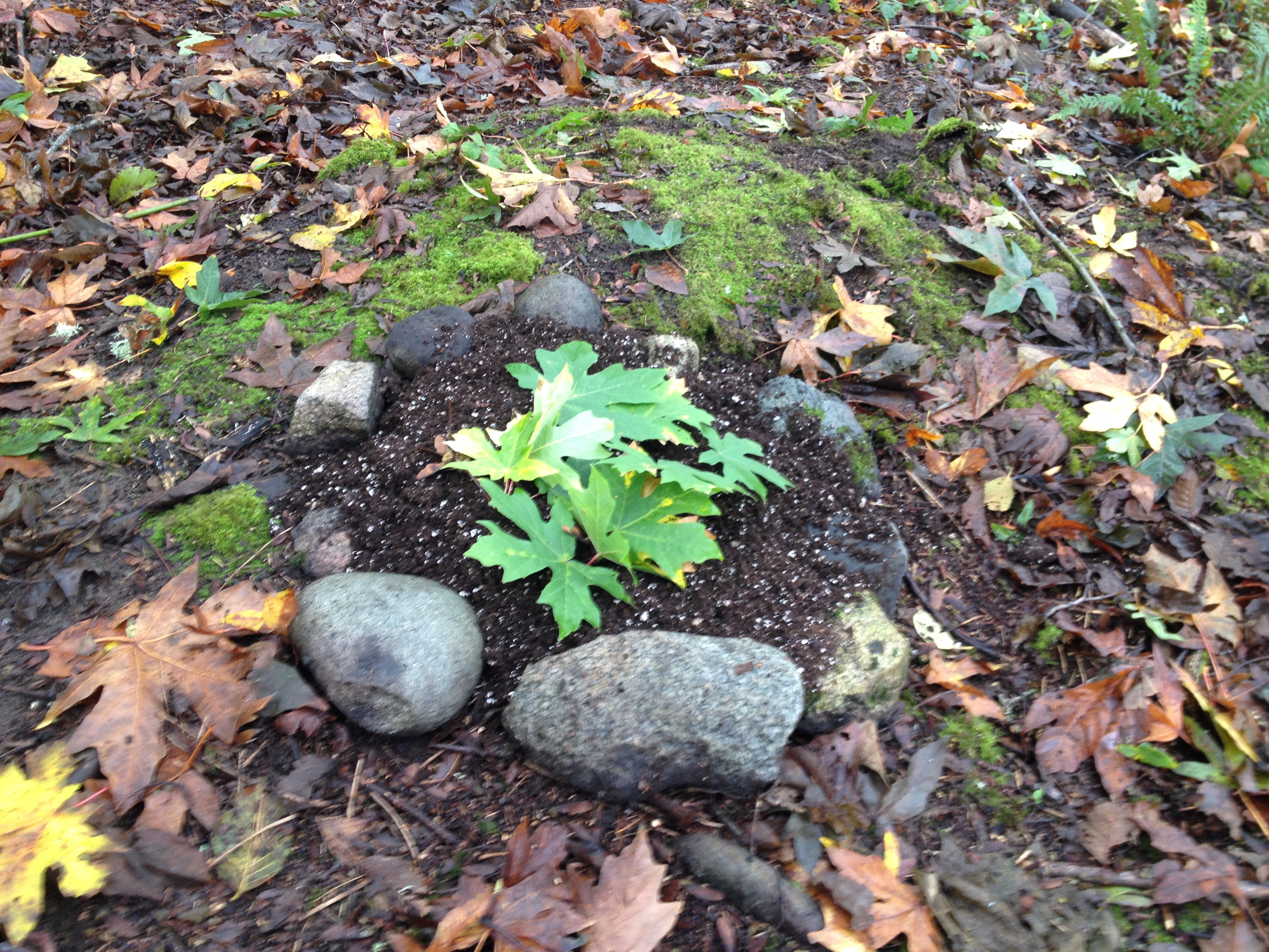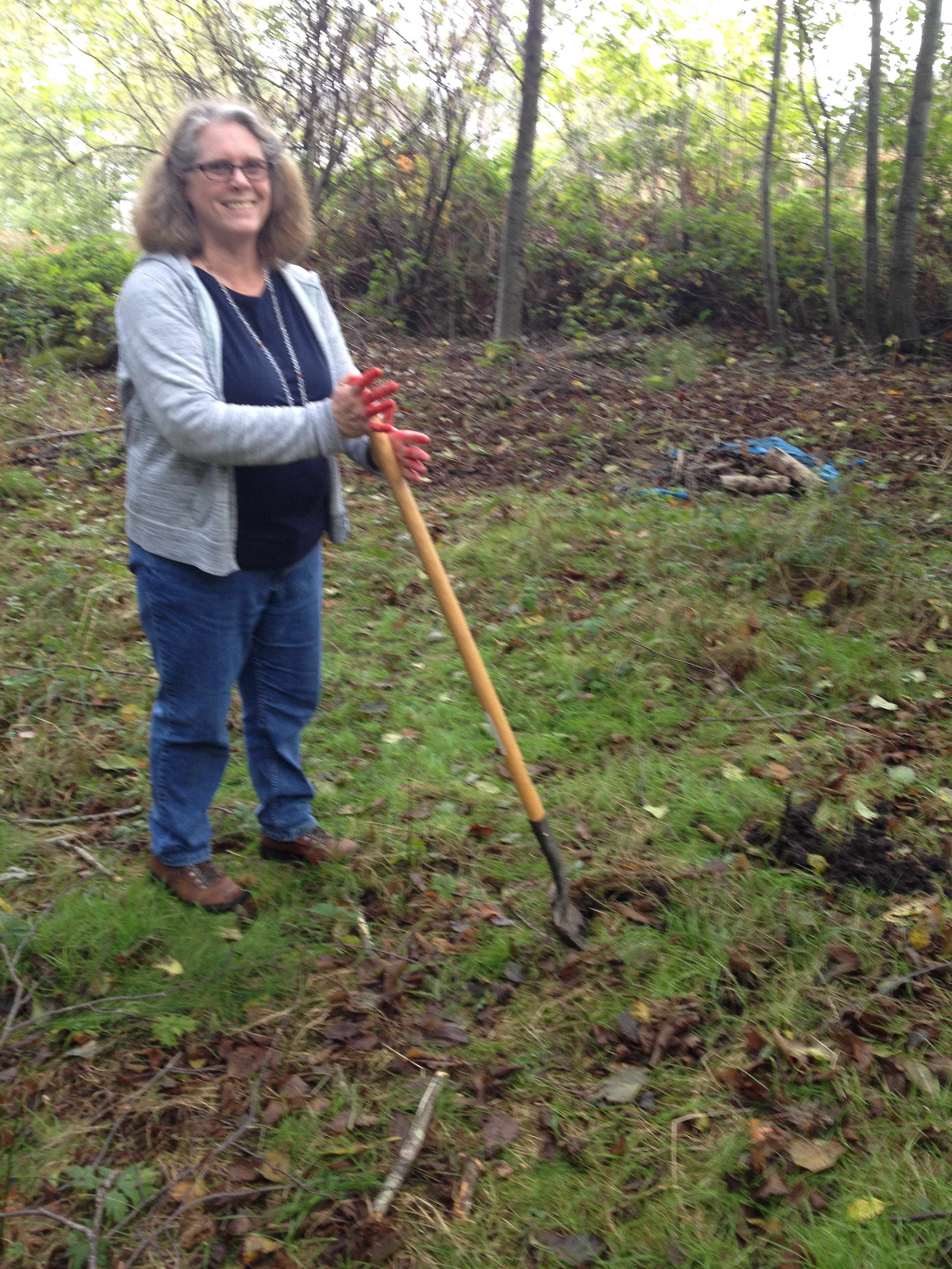 After the culvert work was done, Robin and I went up into the woods and had a little ground-breaking ceremony. Following Feng Shui rituals, Robin made a small garden under our big maple tree with rocks, soil and leaves. It is supposed to be a wildflower garden but the woods are too shady for wildflowers. She also hung crystals from some of the trees.