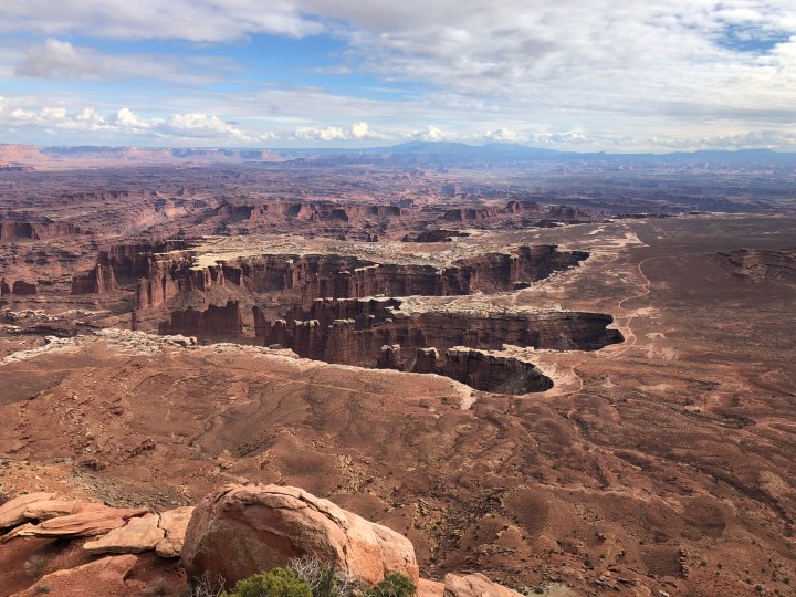 We went to Island in the Sky, the most accessible. Island in the Sky is essentially a giant triangular plateau formed by the Colorado and Green Rivers, which meet at the southern end.