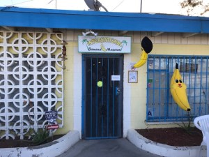 We entered the park from the south, drove all the way through and out the north side, stopped for lunch in the Twenty-Nine Palms, and drove back through the park and then to our camp. On the way, we stopped for water at a roadside convenience store that was next door to something calling itself the International Banana Museum. It didn’t appeal to us, so we didn’t go in.